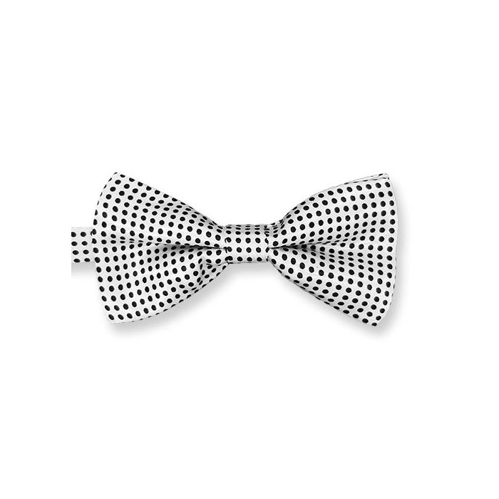 Diese gepunktete Fliege ist einfach umzubinden durch die verstellbaren Riemen. Das Material sorgt für eine weiche, glänzende Oberfläche. Die weiß schwarze Fliege ist bereits vorgebunden. Kragenweite: one size, in der Weite verstellbar.